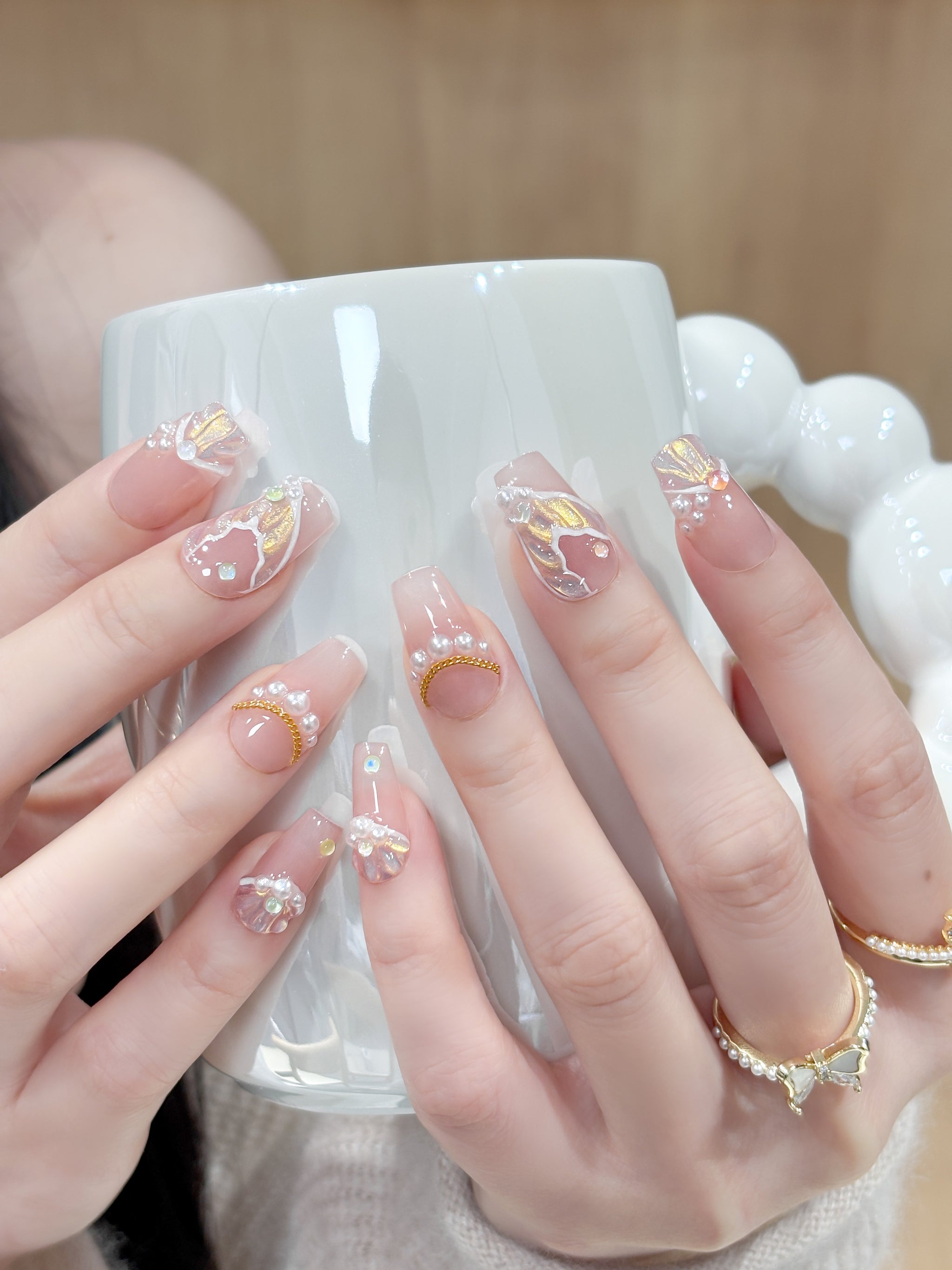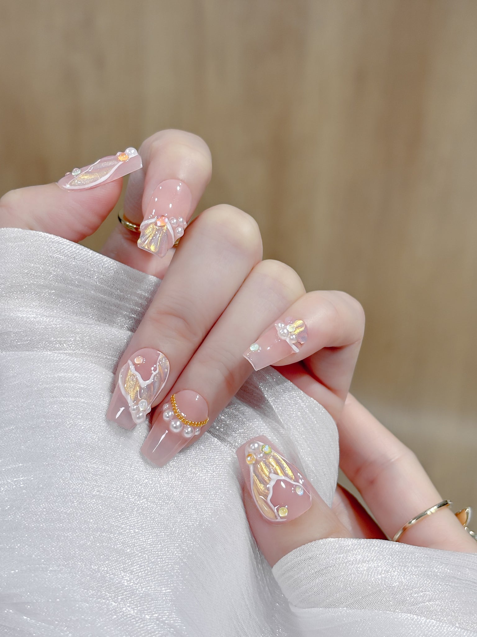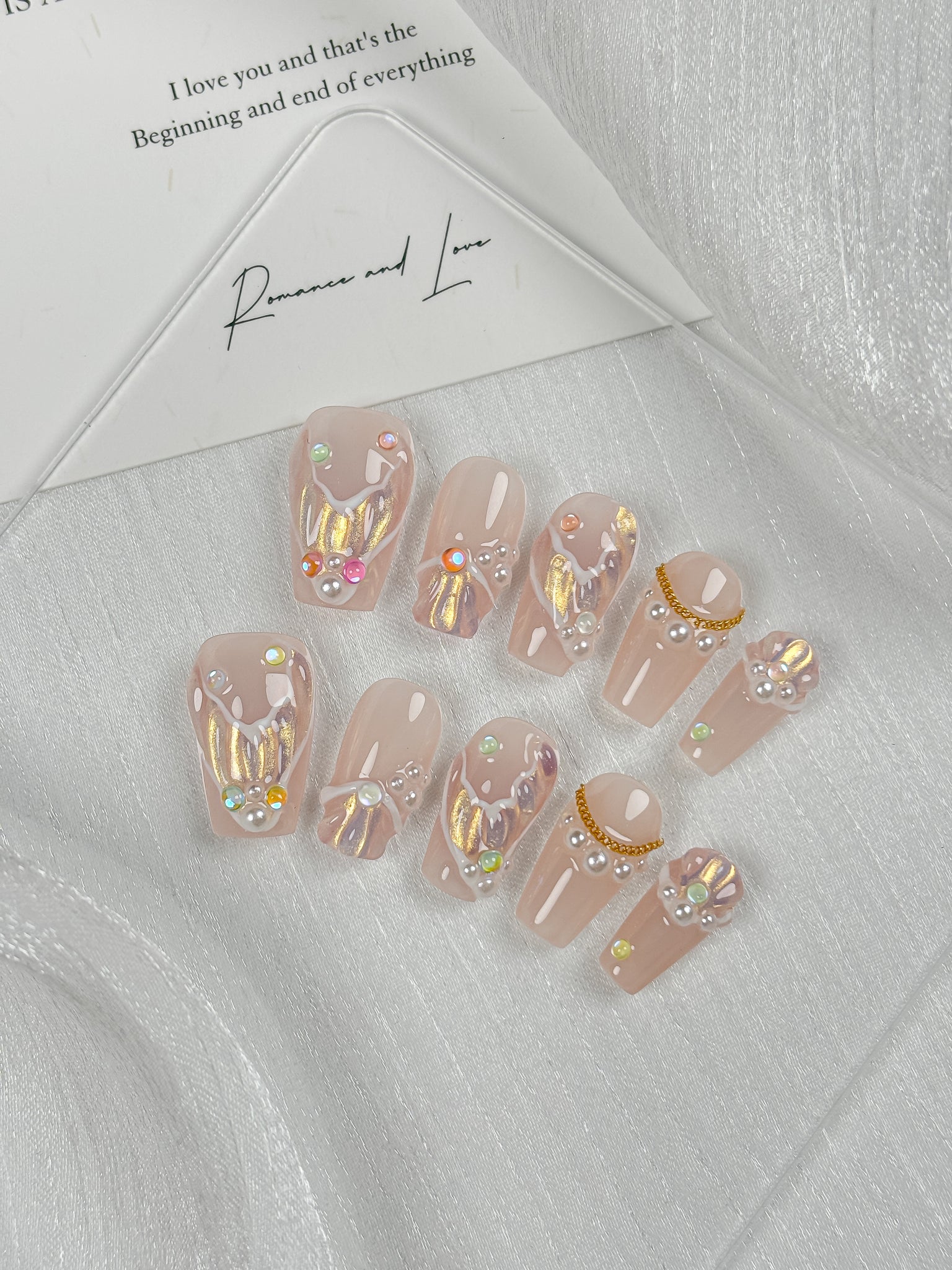 Mermaid's Treasure nails capture the magic of the ocean with their shimmering, iridescent finish. The design features beautiful hints of underwater hues and playful details that sparkle like hidden gems. Easy to apply and comfortable to wear, these nails are perfect for everyday style or special occasions when you want to add a touch of mermaid magic to your look.